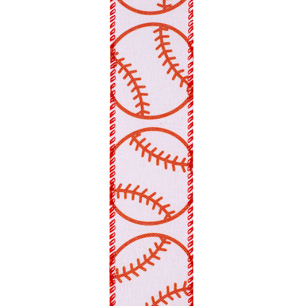 Bring sporty charm to your projects with this Baseball Spin Linen Wired Edge Ribbon.