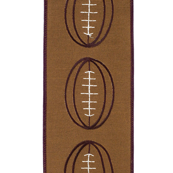 This richly textured ribbon features bold, stitched football motifs across a deluxe brown dupioni-style fabric. With its wired edges and wide 4-inch width, it’s the perfect choice for crafting statement bows, wreaths, and tailgate party accents that hold their shape with ease.
