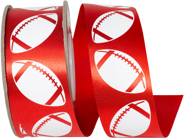 Homecoming Matte Footballs Cooler Ribbon –- Red / White Color -- 1⅜" x 25 Yards