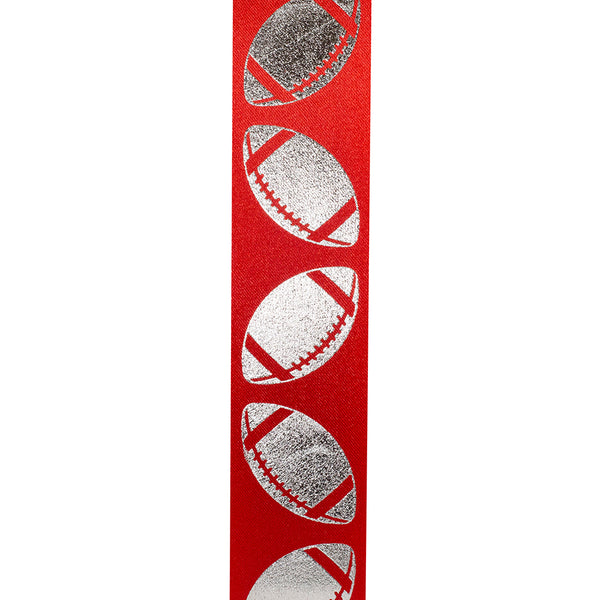 Featuring bold metallic gold footballs printed on sleek red polyester with a firm finish, this ribbon delivers drama, contrast, and high-impact shine. Its narrow width makes it ideal for corsages, favors, treat bags, centerpieces, and detailed bow work.