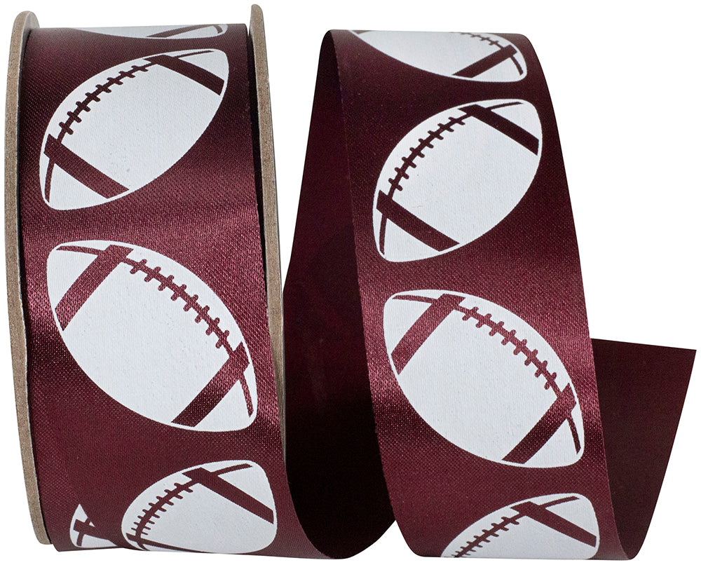 Homecoming Matte Footballs Cooler Ribbon –- Burgundy / White Color -- 1⅜" x 25 Yards