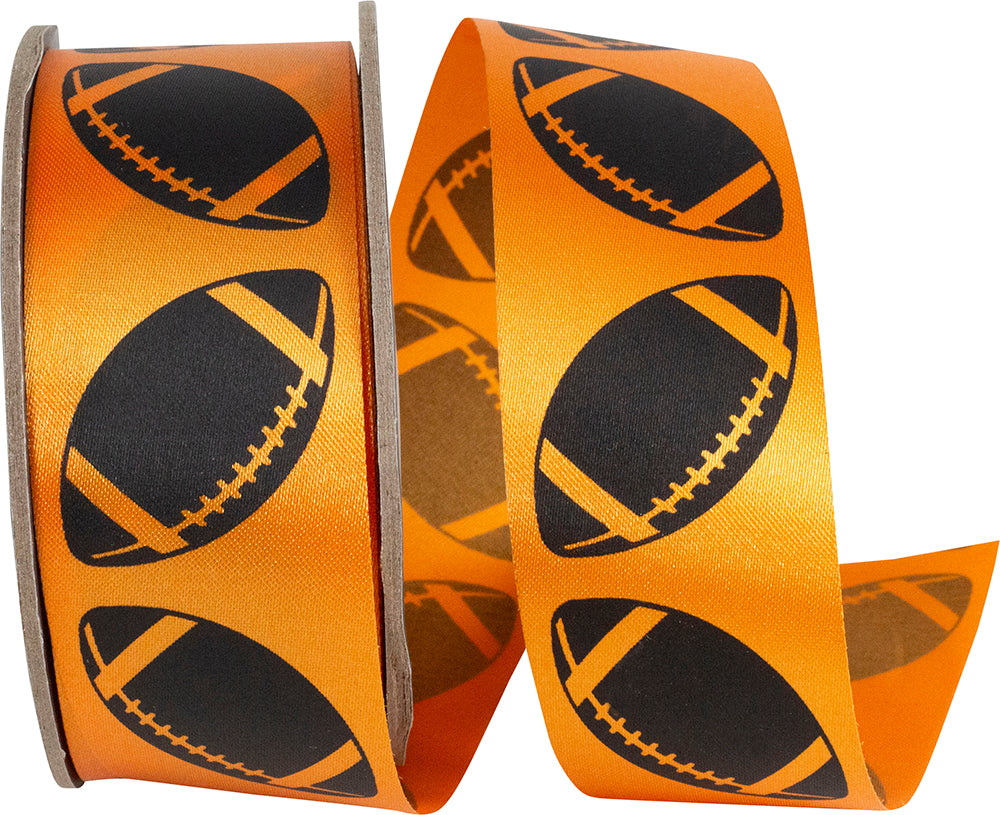 Homecoming Matte Footballs Cooler Ribbon –- Orange / Black Color -- 1⅜" x 25 Yards