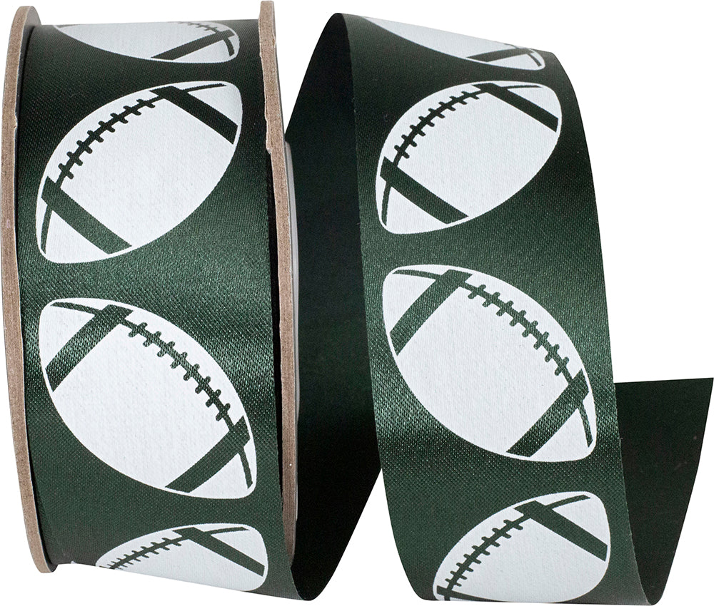 Homecoming Matte Footballs Cooler Ribbon –- Hunter Green / White Color -- 1⅜" x 25 Yards