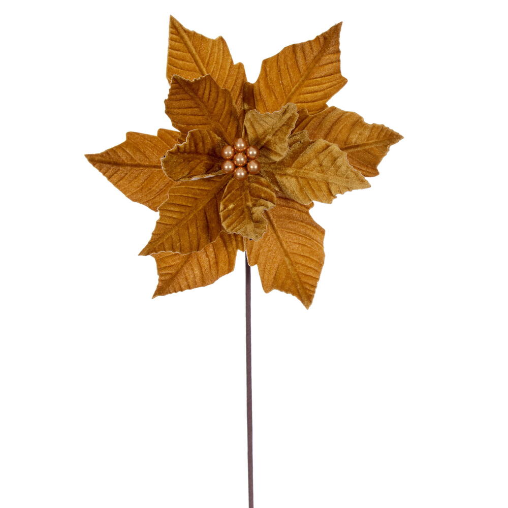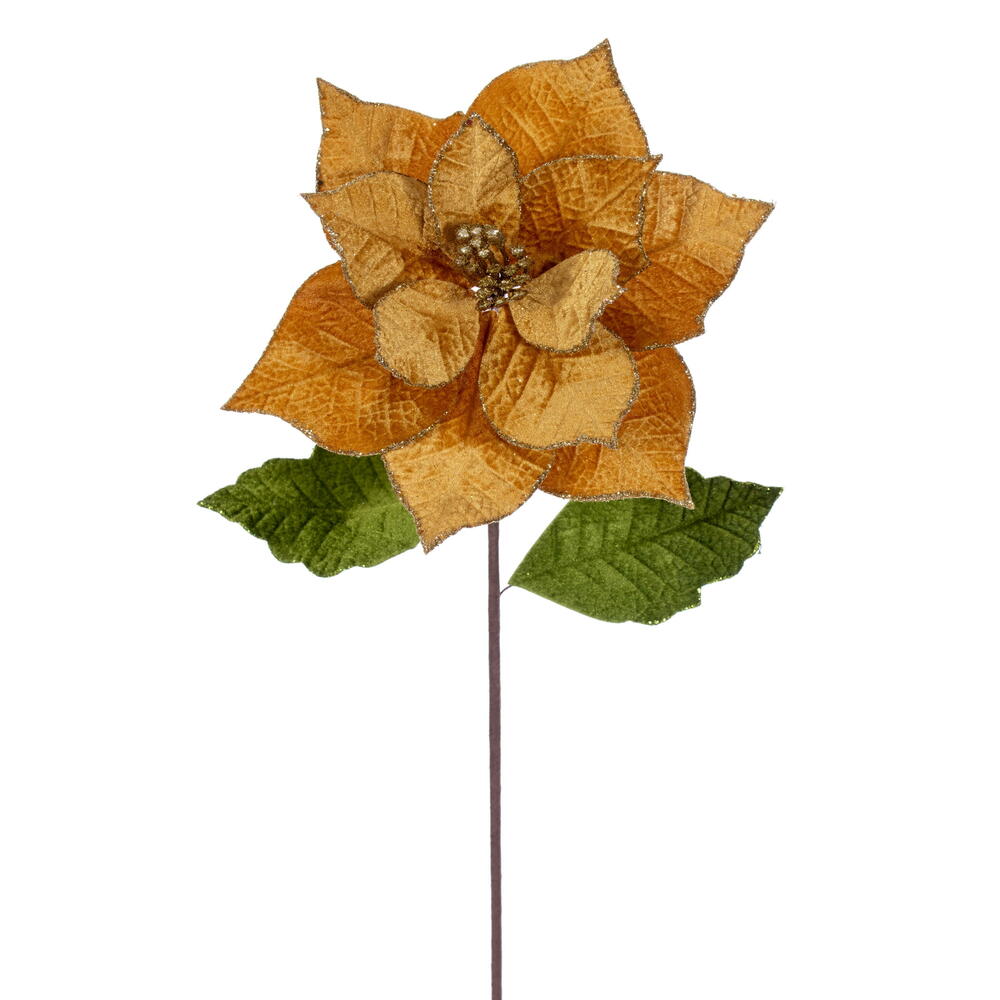Gold Color - Poinsettia Velvet Stem - Artificial Flower Christmas Decoration --- 18” Bloom / 21.5” Length --- 2 per Bag --- by Vickerman®