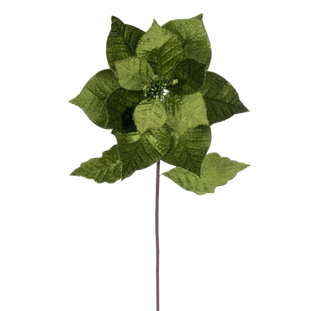 Green Lime Color -- Poinsettia Classic Velvet (with Glitter Border) Stem - Artificial Flower Christmas Decoration -- 12" Bloom x 20" Length -- 4 per bag -- by Vickerman®