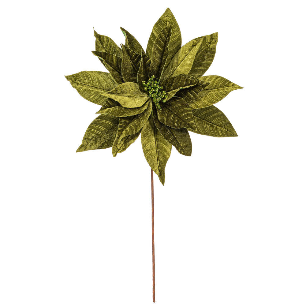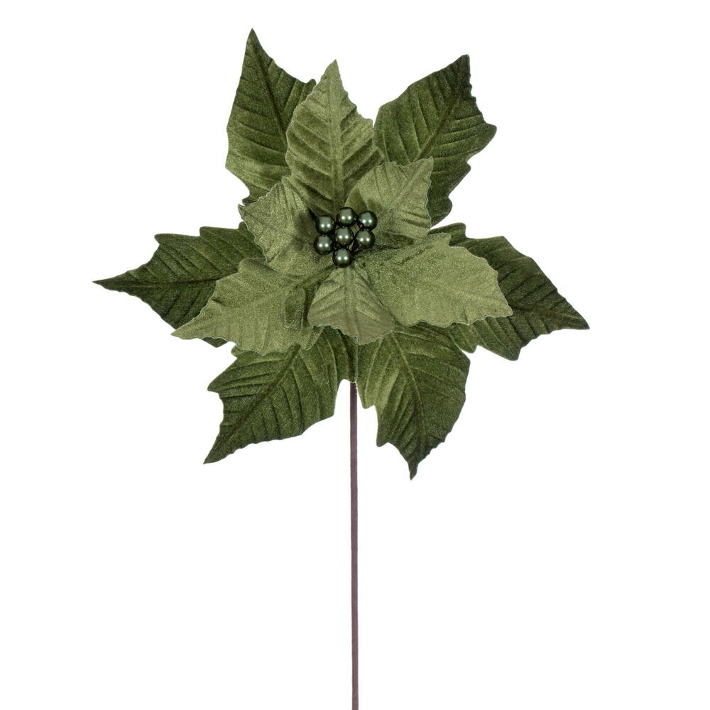 Green Lime Color - Poinsettia Velvet Stem - Artificial Flower Christmas Decoration --- 18” Bloom / 21.5” Length --- 2 per Bag --- by Vickerman®