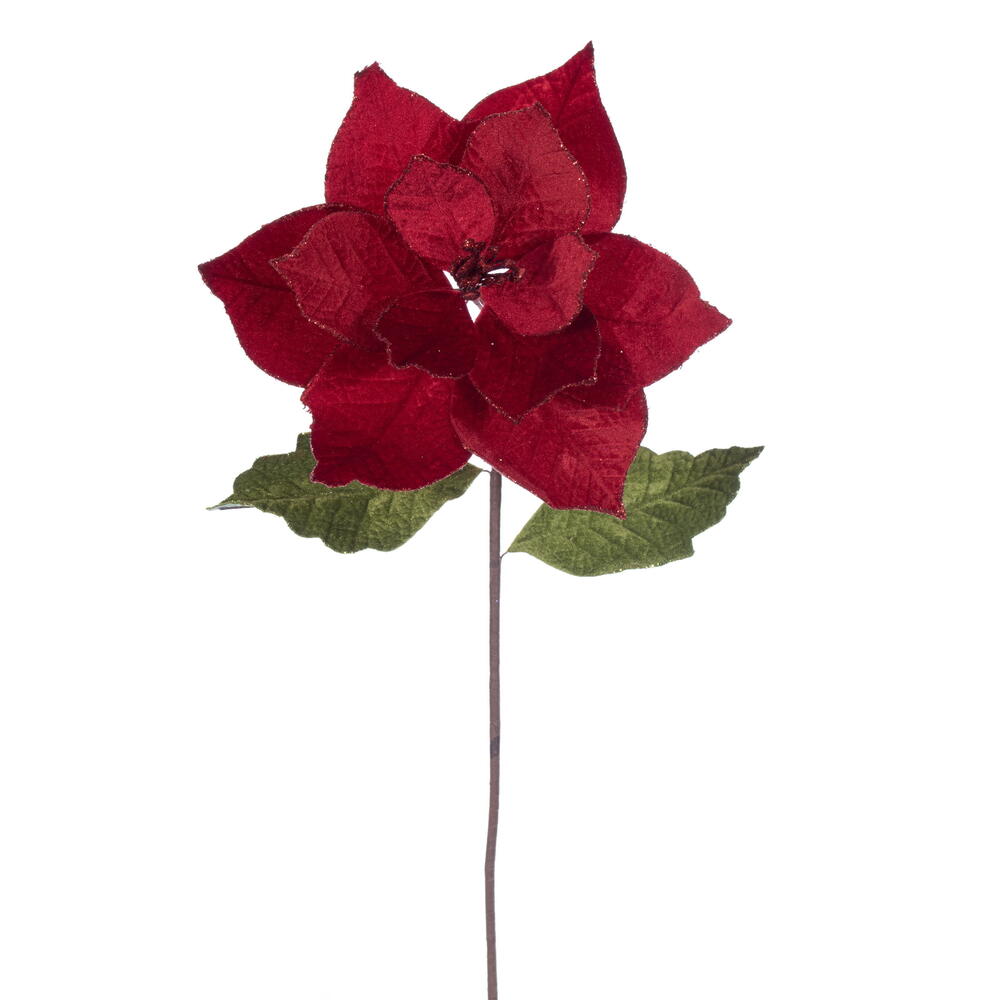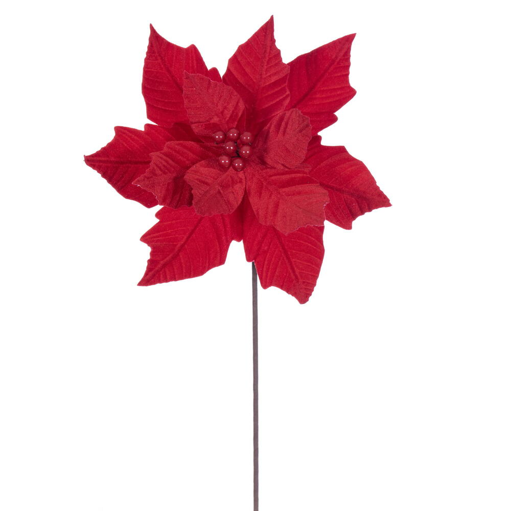 Red Color - Poinsettia Velvet Stem - Artificial Flower Christmas Decoration --- 18” Bloom / 21.5” Length --- 2 per Bag --- by Vickerman®