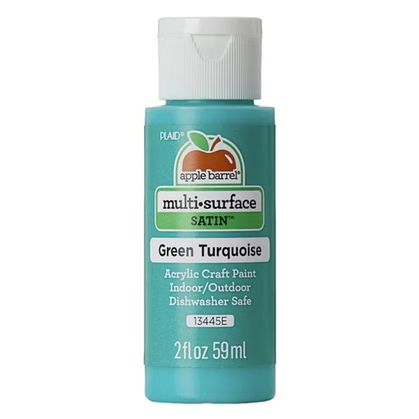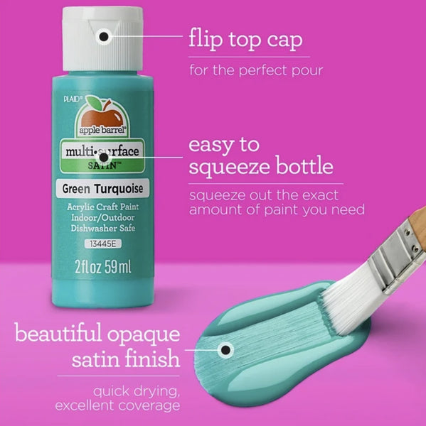 Bring smooth, vibrant color to every creative surface with Apple Barrel® Multi-Surface Satin Acrylic Paint in Green Turquoise Color.