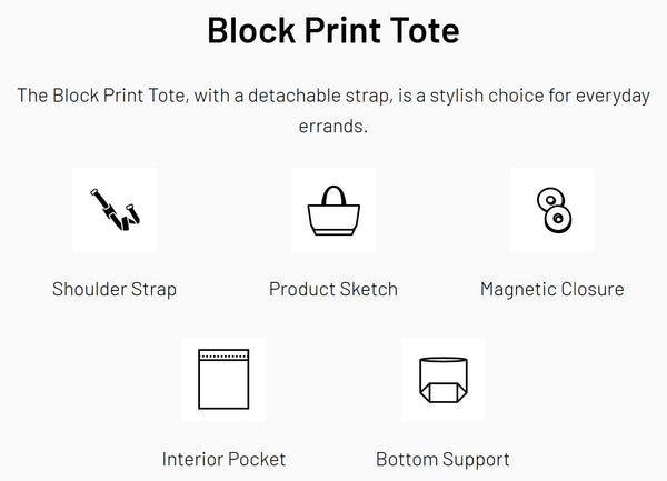 Made from a durable canvas and cotton blend, this tote features block print handles, a reinforced bottom, and a detachable, adjustable shoulder strap with antique brass hardware. The interior pocket helps keep valuables organized, while the open-top design offers quick and easy access.